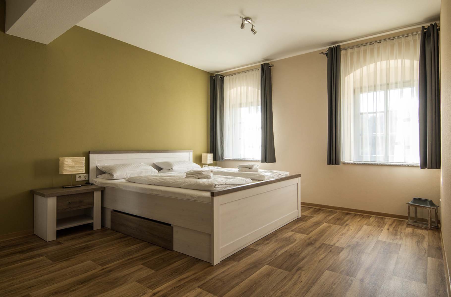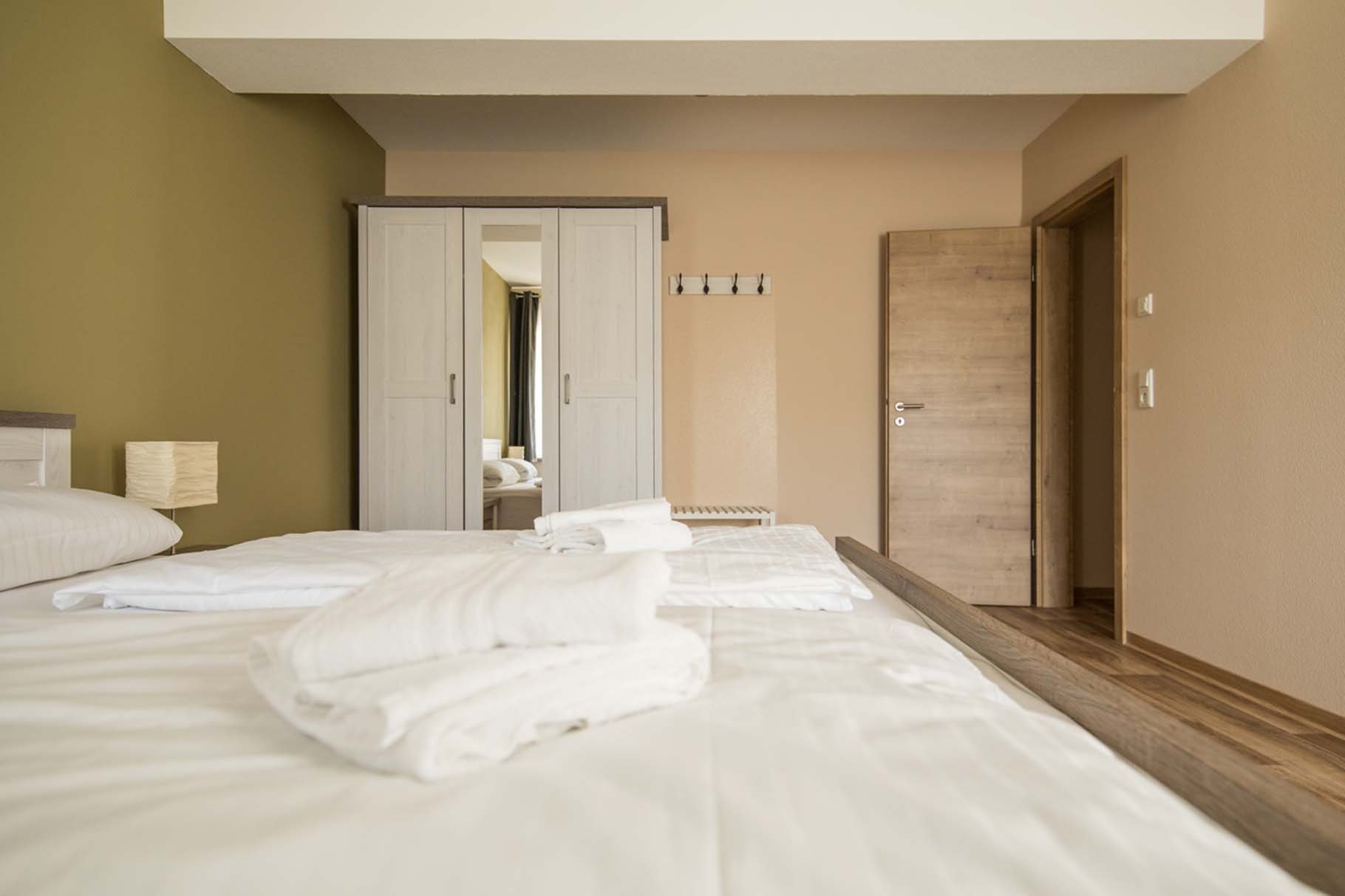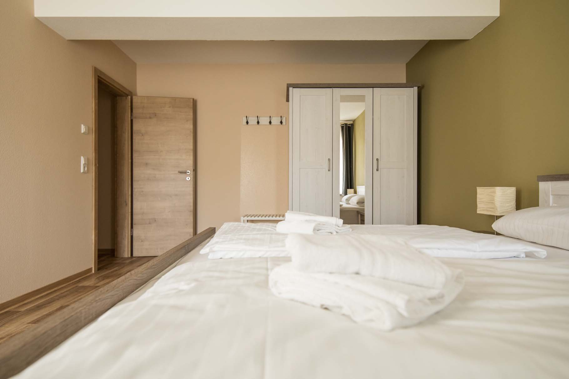 Doppelbett, Kleiderschrank, Bettwäsche, Fußbodenheizung