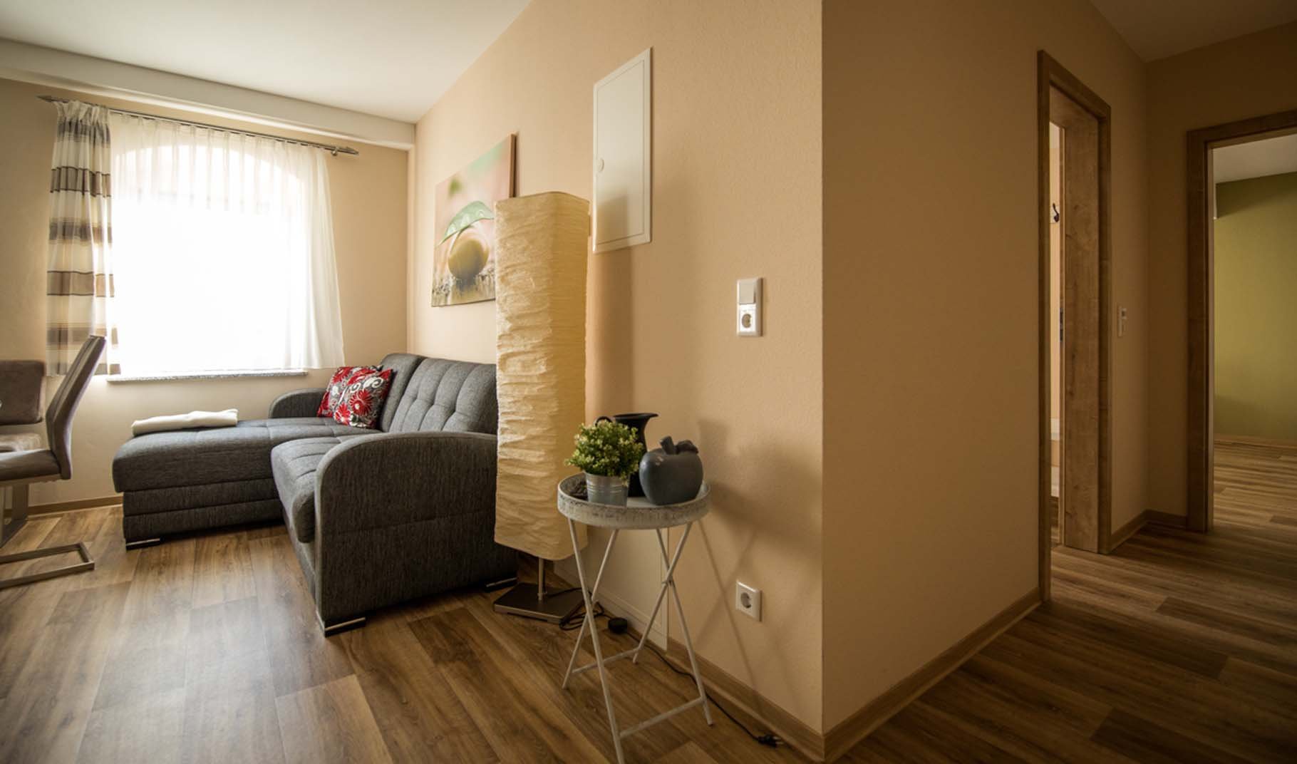 Internetanschluss (WLAN) und Parkplatz für ein Auto vorhanden. Aufbettung mit Kinderbett auf Anfrage möglich. Die Ferienwohnung ist nur über eine Treppe erreichbar. Haustiere und Hunde sind nicht gestattet. Das Rauchen ist in der gesamtem Ferienwohnung nicht erlaubt.