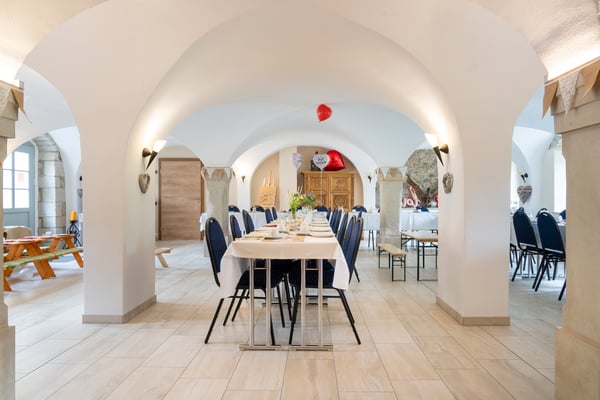 Unser großzügiger, aufwändig sanierter Gewölbesaal steht ihnen als Gesellschaftsraum zur Verfügung.